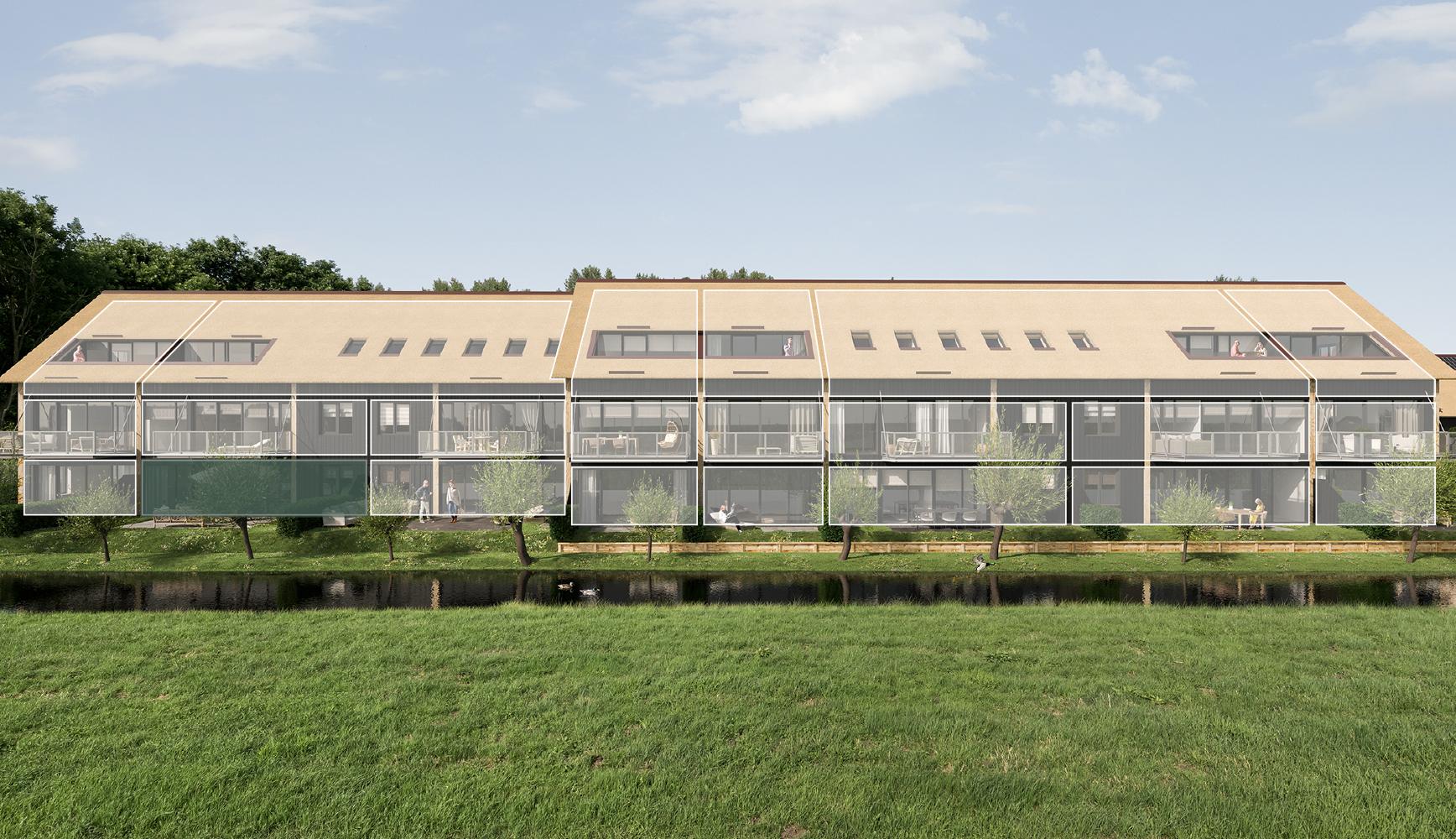 Op de begane grond komt dit charmante appartement met twee slaapkamers. De ruime woonkamer met open keuken is gekoppeld aan het terras. Deze ligt op het zuidwesten, zodat u de hele dag van de zon kunt genieten. Van het zicht op het polderlandschap hoeft u nooit iets te missen, want de bijna verdiepingshoge ramen zorgen voor een bijna open verbinding met buiten. Om uw privacy geen zorgen. Hier heeft u geen overburen!